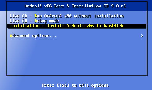 • Choose the option “Installation – Install Android-x86 to harddisk”.